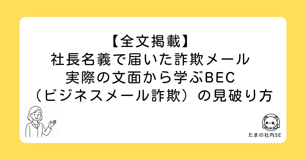今回は、実際に届いた社長名義の詐欺メールを公開し、ビジネスメール詐欺(BEC)の手口と対処法を解説します。