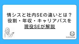 情シスと社内SEの違いを現役社内SEが解説。情シスは「部門」、社内SEは「職種」という基本的な違いから、業務範囲・求められるスキル・年収相場・キャリアパスまで詳しく比較。転職を考えている方必見の内容です。