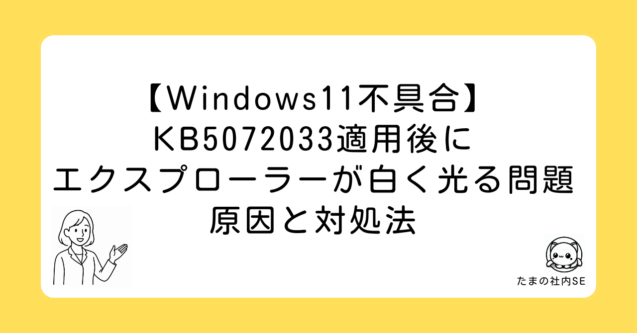 これらの症状は、KB5072033適用後に報告されているエクスプローラーの不具合です。