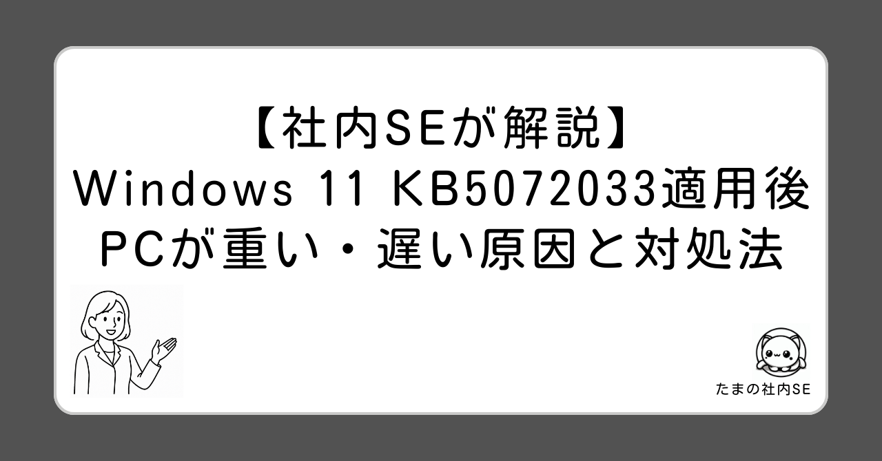 【社内SEが解説】Windows 11 KB5072033適用後にPCが重い・遅い原因と対処法