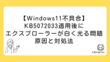 KB5072033適用後にエクスプローラーが白く光る症状については、以下の記事で解説しています。